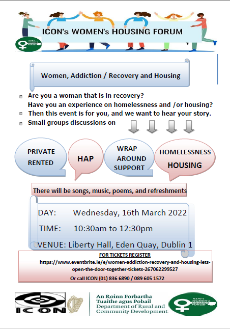 ICON will present two Women’s Housing Forum’s in March. A Professional Discussion Café and two peer-led social and community research training sessions.